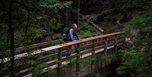 Trekking is the preferred word used to describe multi-day hiking in the mountainous regions of India, Pakistan, Nepal, North America, South America, Iran and in the highlands of East Africa. Hiking a long-distance trail from end-to-end is also referred to as trekking and as thru-hiking in some places. In North America, multi-day hikes, usually with camping, are referred to as backpacking. Another famous early exponent of walking for pleasure, was the English poet William Wordsworth. In 1790 he embarked on an extended tour of France, Switzerland, and Germany, a journey subsequently recorded in his long autobiographical poem The Prelude .His famous poem Tintern Abbey was inspired by a visit to the Wye Valley made during a walking tour of Wales in 1798 with his sister Dorothy Wordsworth.